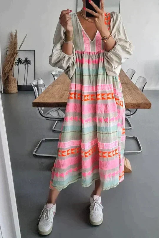 Luisa – kleurrijke maxi-jurk met geometrisch patroon